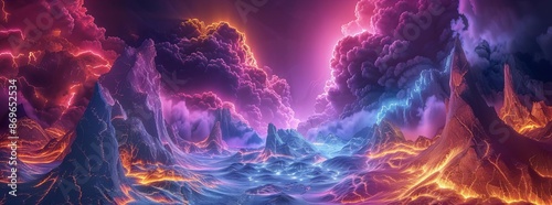 Electric storm in an alien landscape, vibrant colors and surreal formations, SciFi, Digital Art, Otherworldly , high resolution DSLR