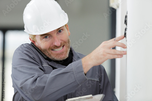 electrician installing socket in new house