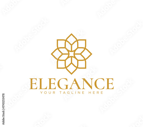 Elegance logo with flower leaf gold luxury decorative mandala minimalist design, Vector image