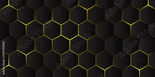 Elegant Abstract Hexagonal Texture with Golden Glow. Modern Black and Gold Honeycomb Pattern for Design. Hexagon. Vector.