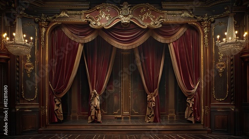 Elegant and luxury empty golden theater stage with ornate of candle lights