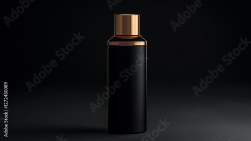 Elegant Black and Gold Perfume Bottle on Dark Background in Studio