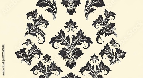 Elegant Black and White Damask Pattern.