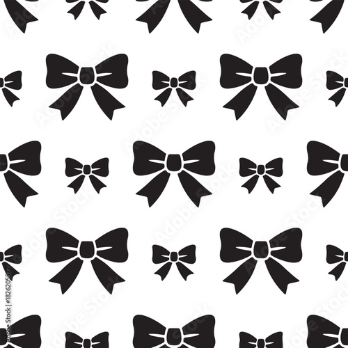 Elegant Black Bows Seamless Pattern on White Background for Gift Wrapping