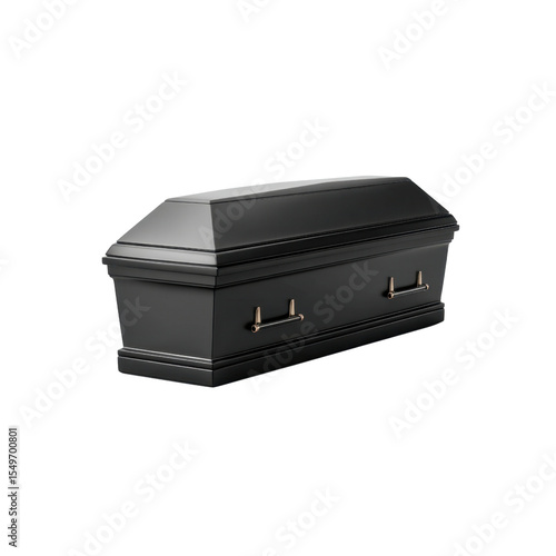 Elegant black coffin with polished finish and gold accents suitable for funerals or memorial services, providing a dignified farewell Transparent background or PNG