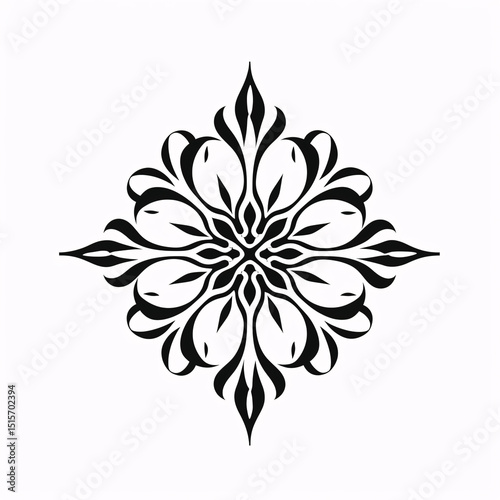 Elegant black floral mandala ornament in symmetrical tribal style on white background