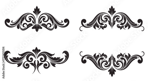 Elegant black floral ornaments and swirling designs on a white background