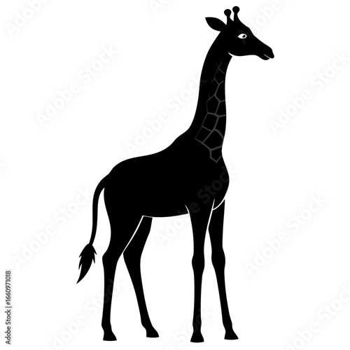 Elegant black giraffe silhouette with distinctive patterned neck, perfect for safari themes and wildlife designs.