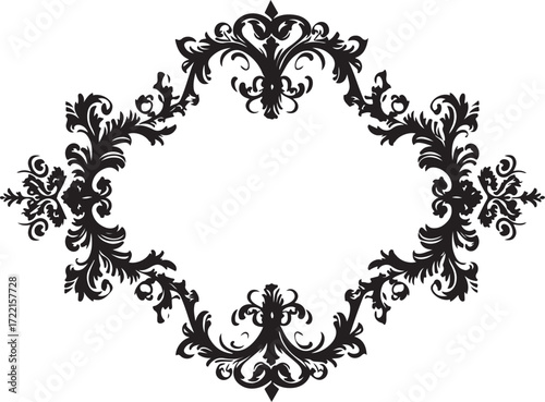 Elegant black ornate scrollwork frame border with empty center for text or images