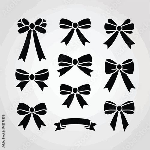 Elegant black vector bow silhouettes for decorative design scalable eps illustration collection silhouette White background