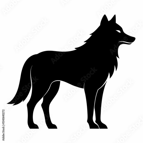 Elegant Black Wolf Silhouette Standing Proudly on White Background Illustration