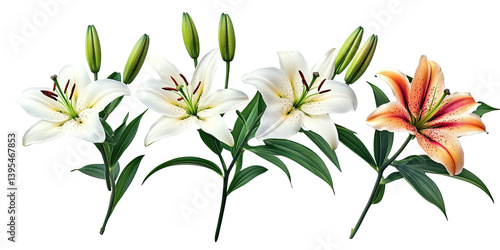 Elegant Blooming Lilies on transparent background