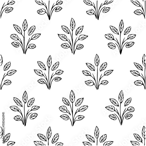 Elegant botanical repeat pattern with delicate branches and leaves illustration