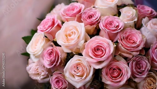 Elegant Bouquet Of Pink And Cream Roses Close Up Romantic Floral Background Perfect For Weddings Valentiners Day Anniversaries