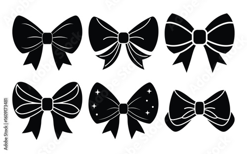 Elegant Bow Collection Silhouette on Transparent Background collection elegant bow silhouettes transparent