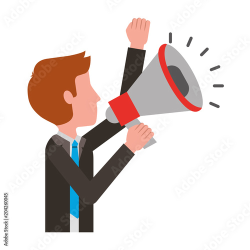 elegant businessman with megaphone avatar character vector illustration design
