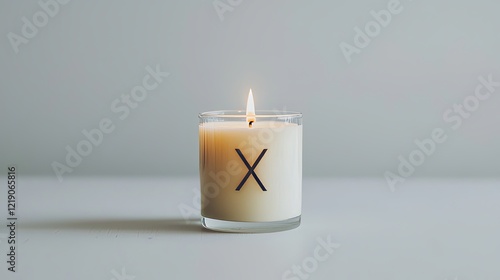 Elegant Candle with Alpha and Omega Symbols Etched on Glass in Soft Lighting