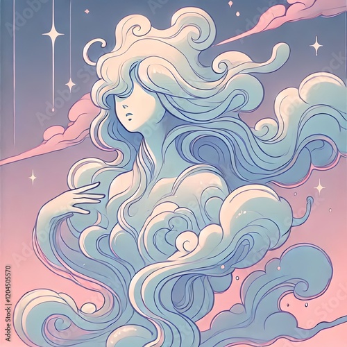 Elegant Cloud Deity in Soft Pastel Tones