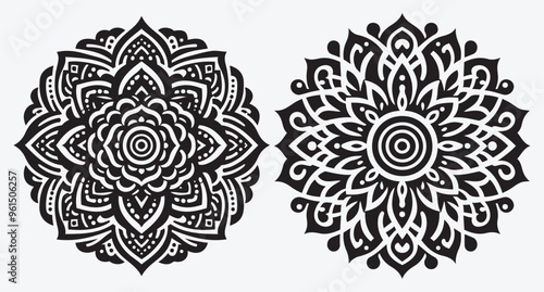 Elegant Floral Mandala Pattern Silhouettes Collection of Abstract Floral Ornaments