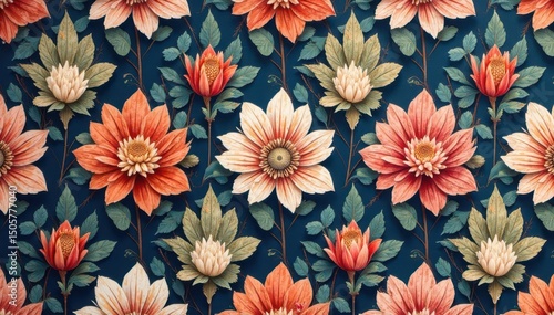 Elegant floral motifs create a sophisticated, repeating pattern ideal for interior decor , textile, elegant, spring