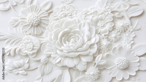 Elegant floral pattern in pristine white, a serene and delicate arrangement, perfect for backgrounds, invitations or sophisticated print projects