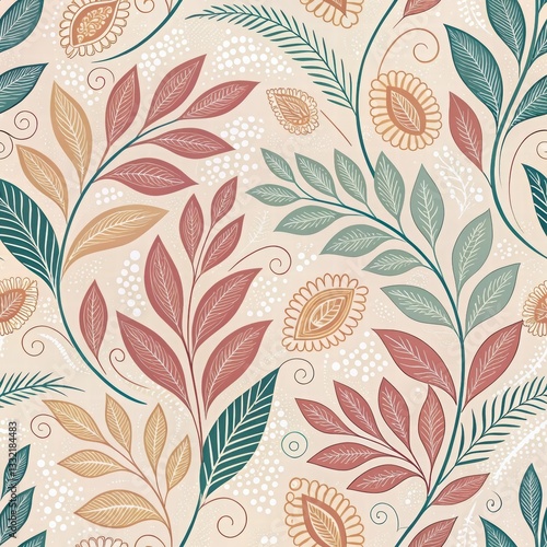 Elegant Floral Pattern with Colorful Leaves and Delicate Flowers