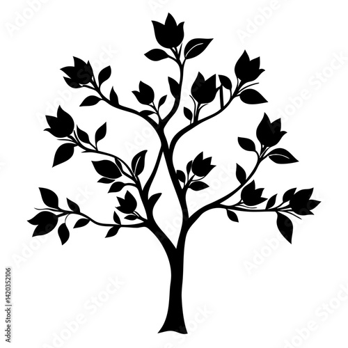 Elegant floral tree silhouette with abstract flower blossoms and leaf design
