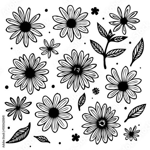 Elegant Floral Vector Illustration: Daisy Flower and Leaf Arrangement on White