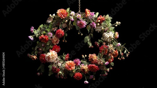 Elegant floral wreath with vibrant dahlias perfect for wedding invitations or sophisticated branding projects needing a touch of natural beauty