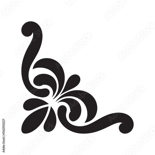 Elegant Flourish Corner Design Ornamental Element for Invitations or Decorative Purposes with a Classy Swirling Pattern in Dark Black