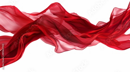 Elegant Flowing Red Silk Fabric on White Background. Generative ai