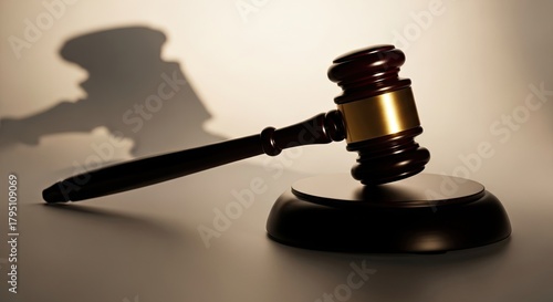 Elegant gavel resting gently under soft light, perfect for legal themes, justice, courtroom drama, legal settlements, judgments, and law firm branding