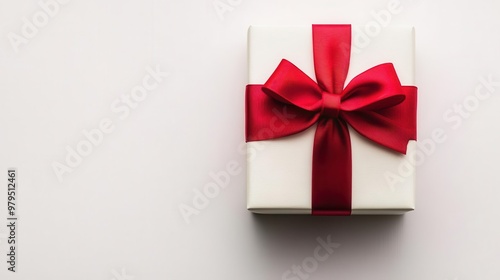 elegant gift box with vibrant red ribbon bow isolated on pure white background perfect symmetry and luxurious presentation emphasize celebration and generosity