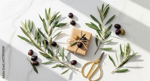 Elegant Gift Wrapping with Olive Branches and Berries.