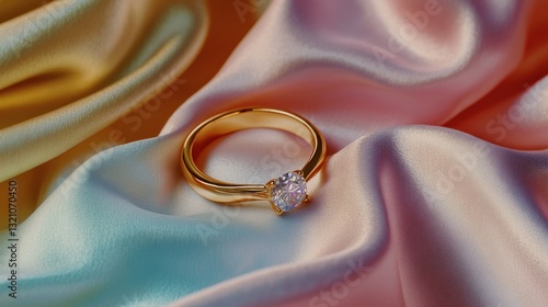 Elegant gold ring on soft fabric