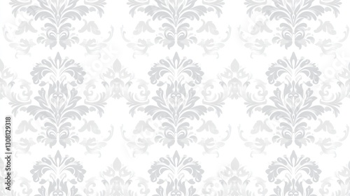 Elegant gray damask pattern, seamless texture, white background, design wallpaper