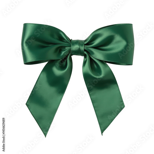 Elegant green satin bow, vibrant smooth texture, perfect for gift wrapping or holiday decorations, adds a festive touch. Isolated on white background or PNG