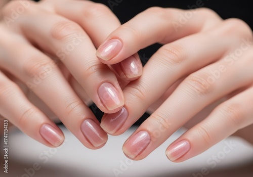 Elegant hands with natural nails and subtle shimmer in soft lighting