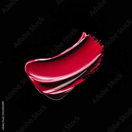 Elegant lipstick strokes create smooth smears on dark background, showcasing vibrant red hues that evoke sense of luxury and beauty