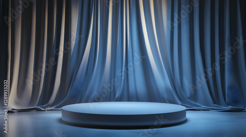 Elegant presentation stage with flowing draped fabric and soft ambient illumination