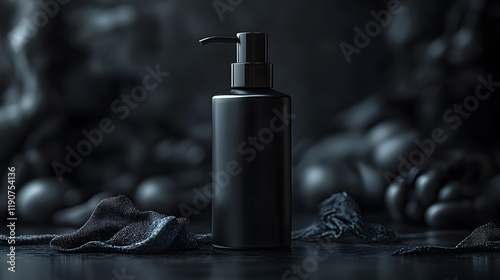 Elegant pump bottle mockup with a glossy finish and soft lighting on a dark setting