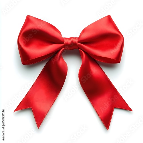 Elegant Red Ribbon Bow Isolated on White Background – Perfect for Gift Wrapping, Holiday Decor, Celebrations, Invitations, Christmas, and Special Occasions