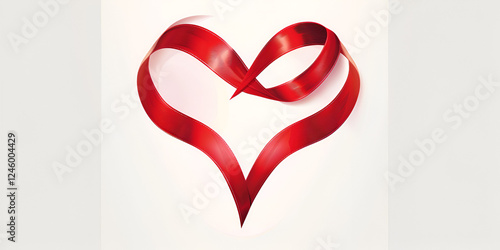 Elegant Red Satin Ribbon Shaped Into Heart, Symbol of Love and Romance for Valentine's Day Decoration