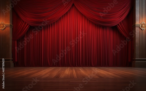 Elegant Red Theater Curtains with Wooden Stage Floor