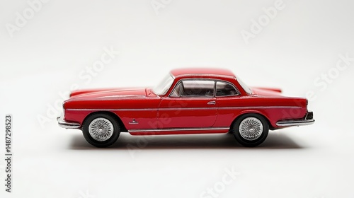 Elegant red vintage toy car model displayed against a pristine white background
