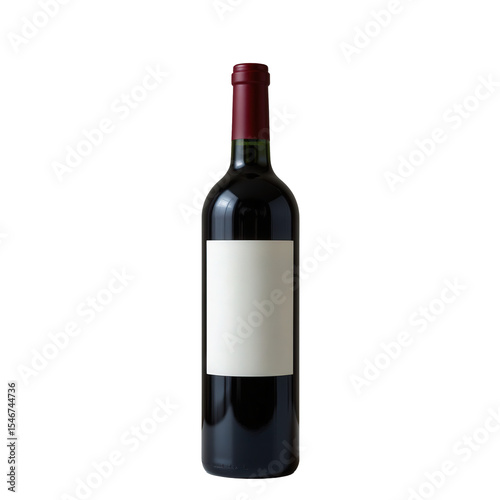 Elegant Red Wine Bottle with Blank Label for Customization on White Background