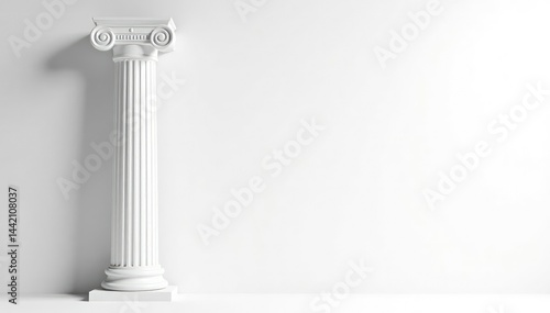 Elegant Roman column against stark white backdrop, strength, background