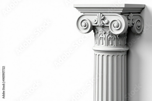 Elegant Roman column detail against stark white backdrop, pillar, photography, simple