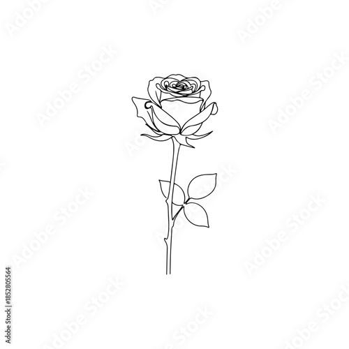 Elegant rose outline isolated on transparent background