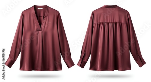 Elegant satin women's blouse with long sleeves and V-neck for sophisticated fashion with a stylish back detail